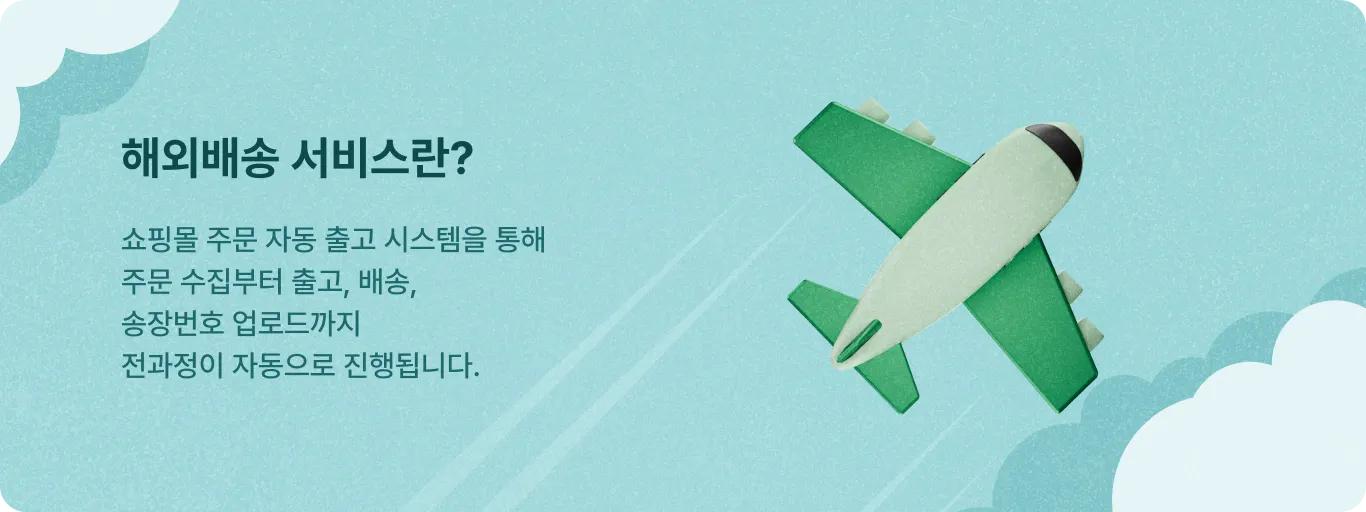 쇼피, 라자다, 큐텐 등의 해외 쇼핑몰 연동을 제외한 해외 배송은 현재 주문 수기 등록만 가능합니다.