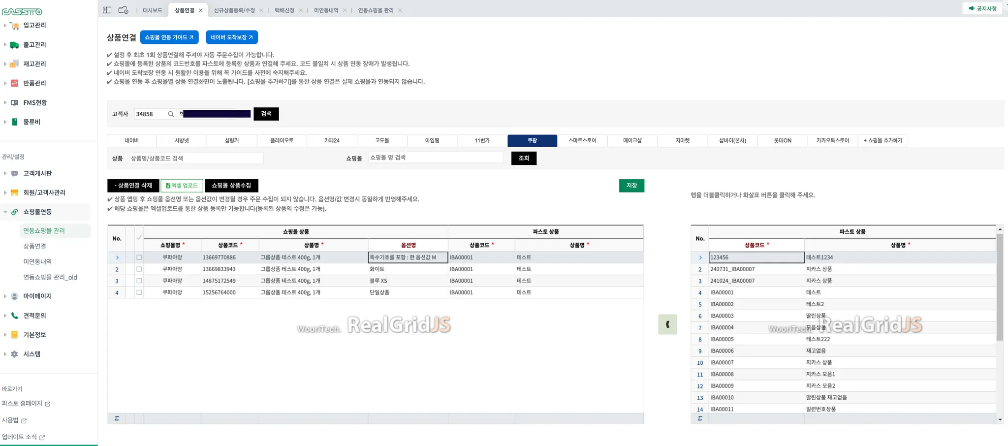 쿠팡에 등록된 상품을 파스토 상품과 맵핑 후 주문수집이 가능합니다.