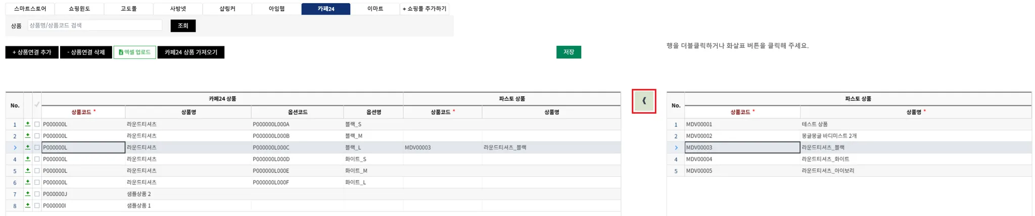 상품 등록 및 쇼핑몰 연동이 완료되면 상품을 연결할 차례입니다.