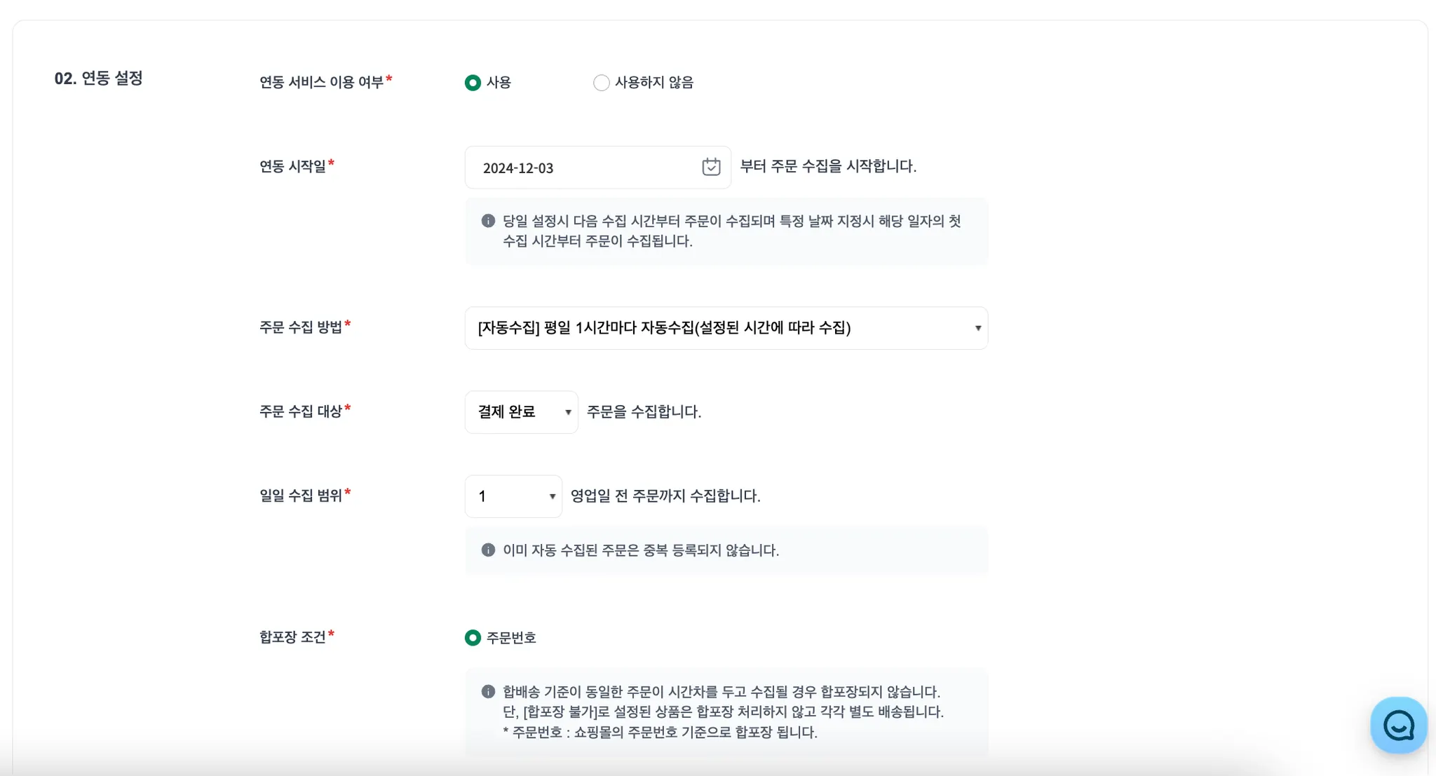 연동 시작일 | 주문수집을 시작할 일자를 설정합니다. |