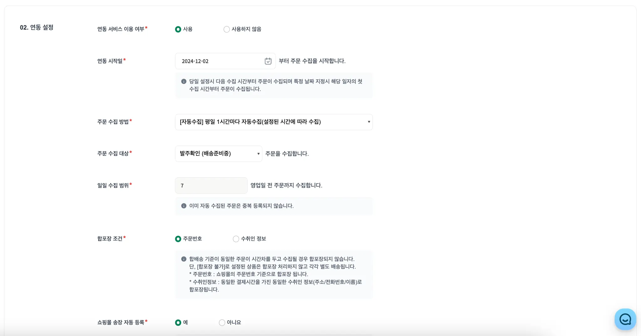 연동 시작일 | 주문수집을 시작할 일자를 설정합니다. |