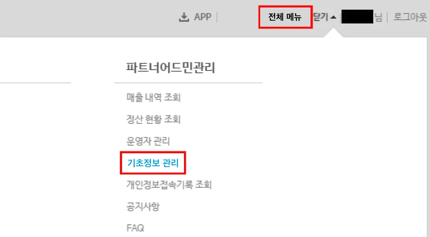 샵바이(파트너사) 판매자센터 > 전체메뉴 > 기초 정보관리 에서 확인해주세요.
