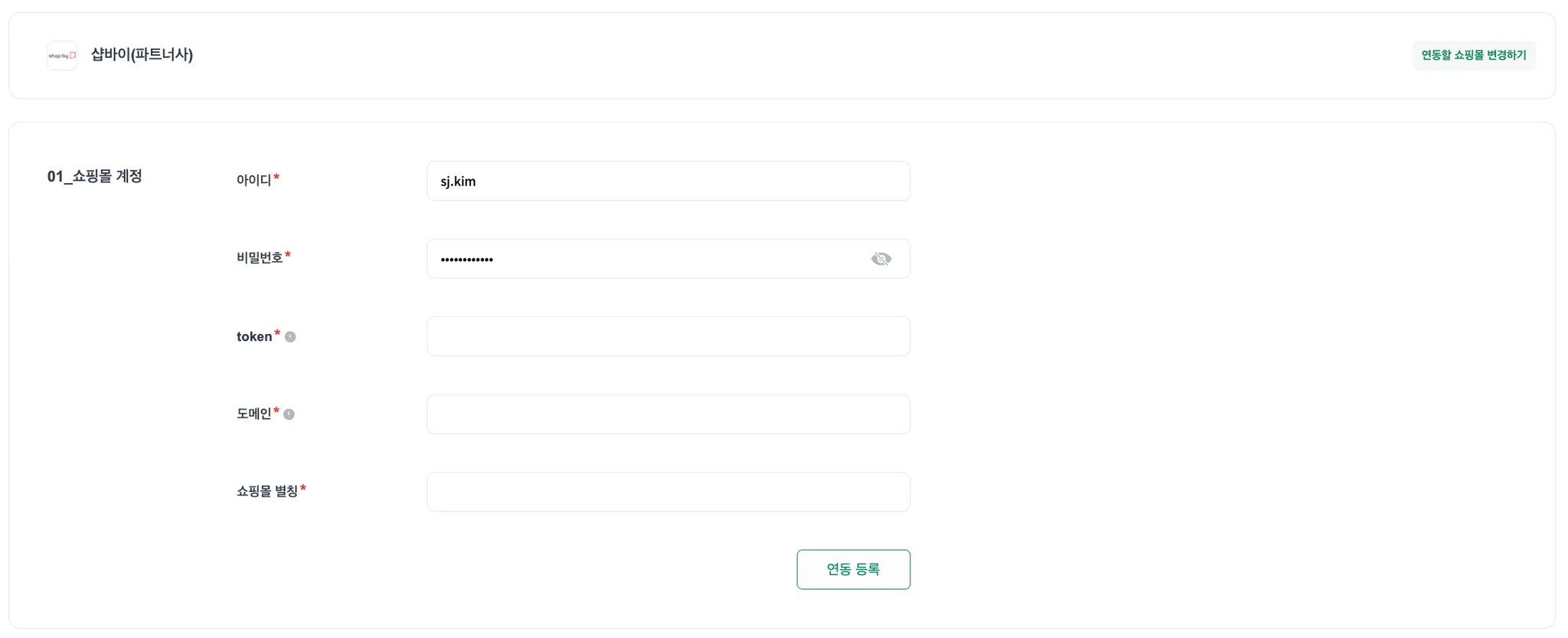 비밀번호 | 샵바이 관리자 계정 비밀번호를 입력해주세요. |