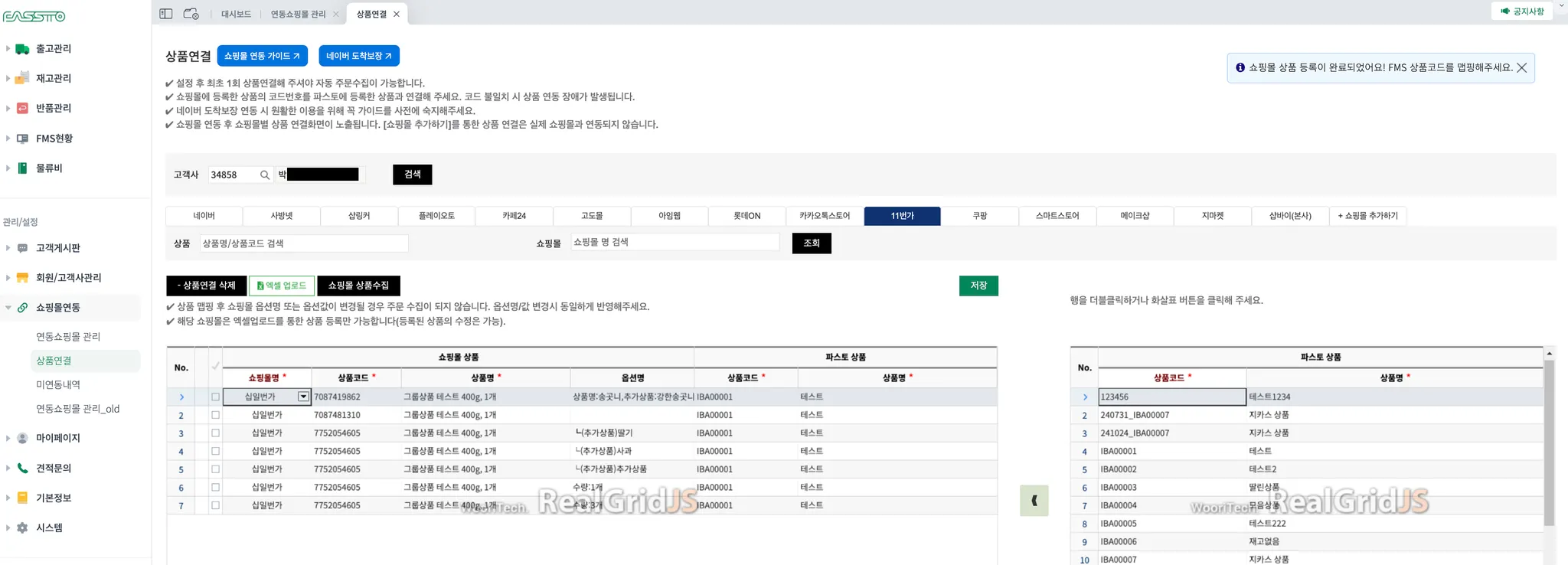 FMS와 [11번가] 를 연동하여 쇼핑몰의 주문부터 출고, 배송 현황까지 연동 관리할 수 있습니다.