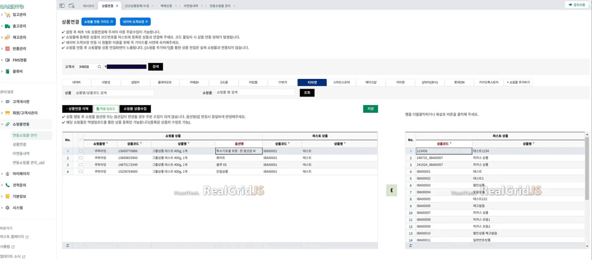쇼핑몰에 등록된 상품을 파스토 상품과 맵핑 후 주문수집이 가능합니다.