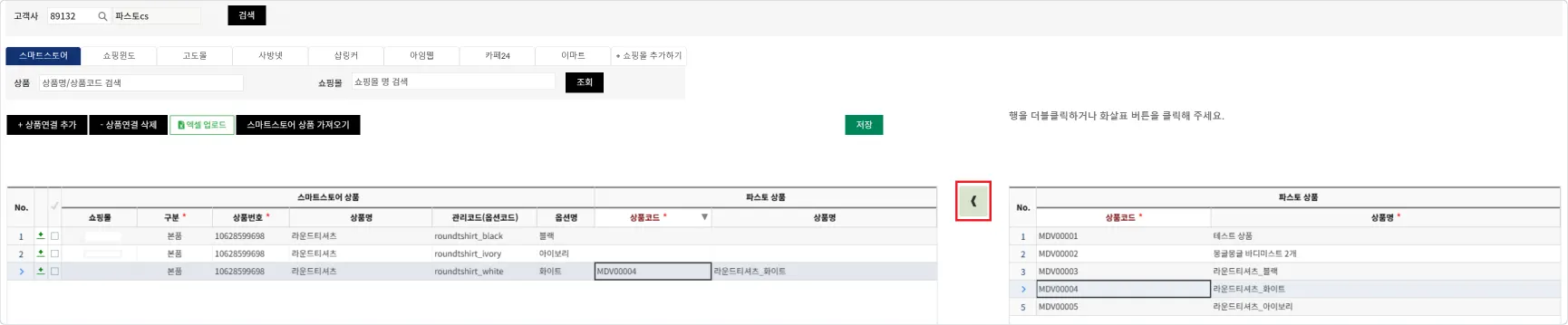 스마트스토어 상품에 파스토 상품이 연결되도록 매칭해주세요.