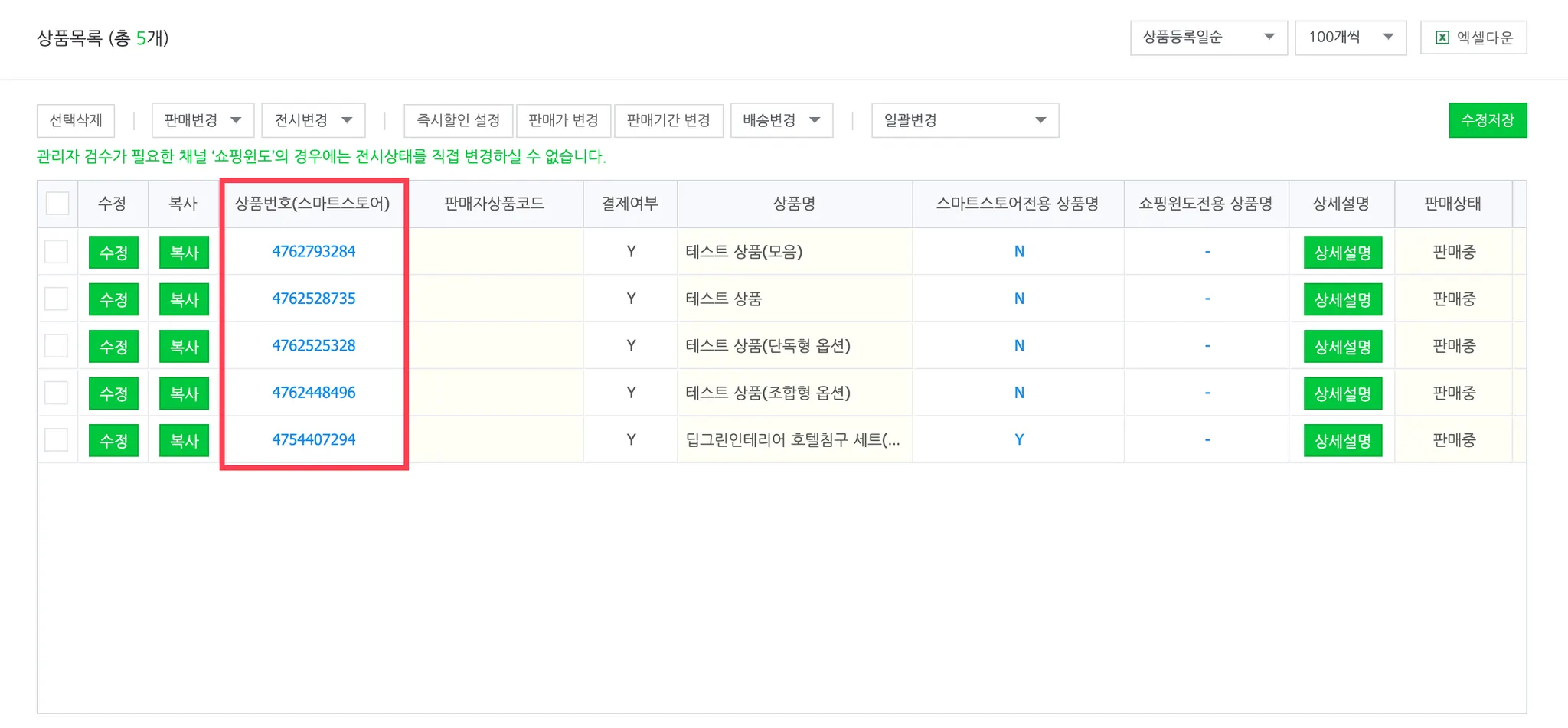 관리코드(옵션코드) 등록 시 중복이 없도록 등록해 주세요. 스마트 스토어의 서로 다른 상품의 옵션관리코드가 동일한 경우 재고 연동에 오류가 발생 할 수 있습니다.
