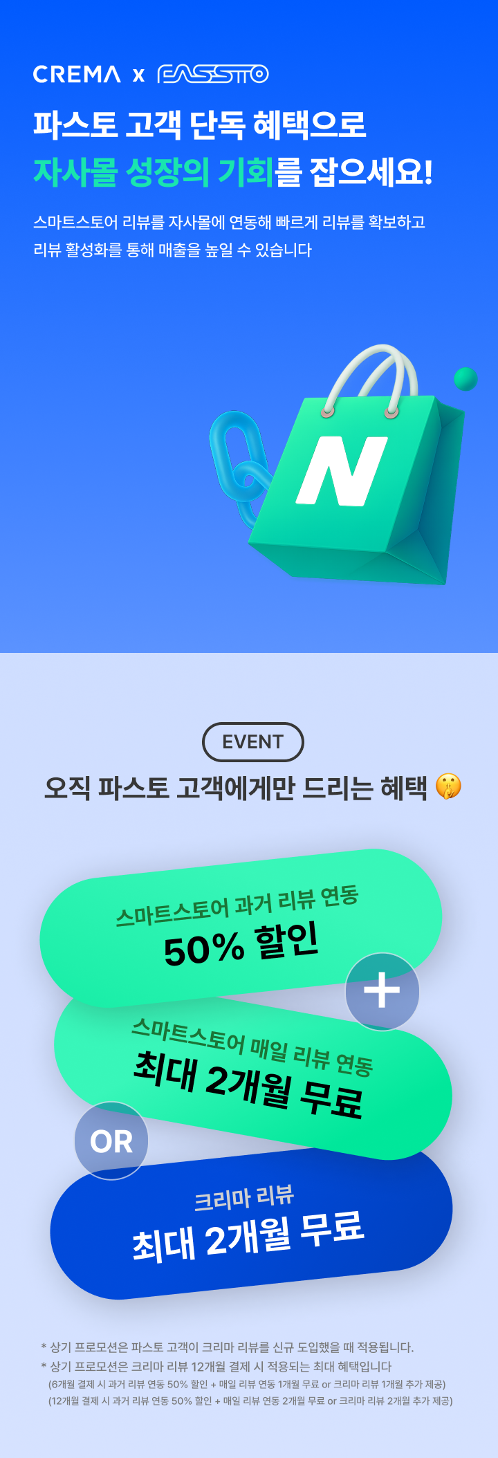 [파스토X크리마] 스마트스토어 리뷰 연동으로 매출 UP