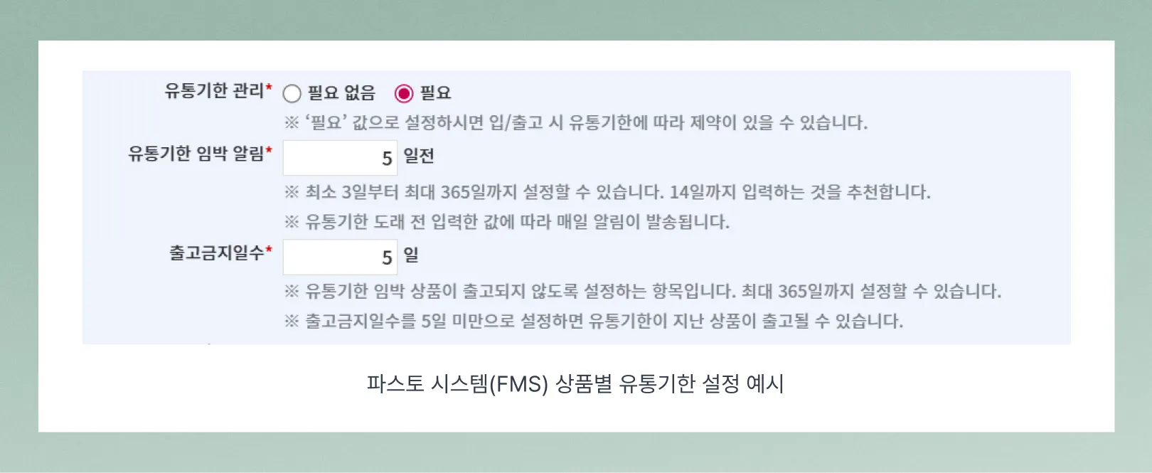 정확한 유효기간 관리: FMS가 유효기간별 재고를 자동으로 추적하고, 시스템이 완벽한 선입선출을 보장해요.