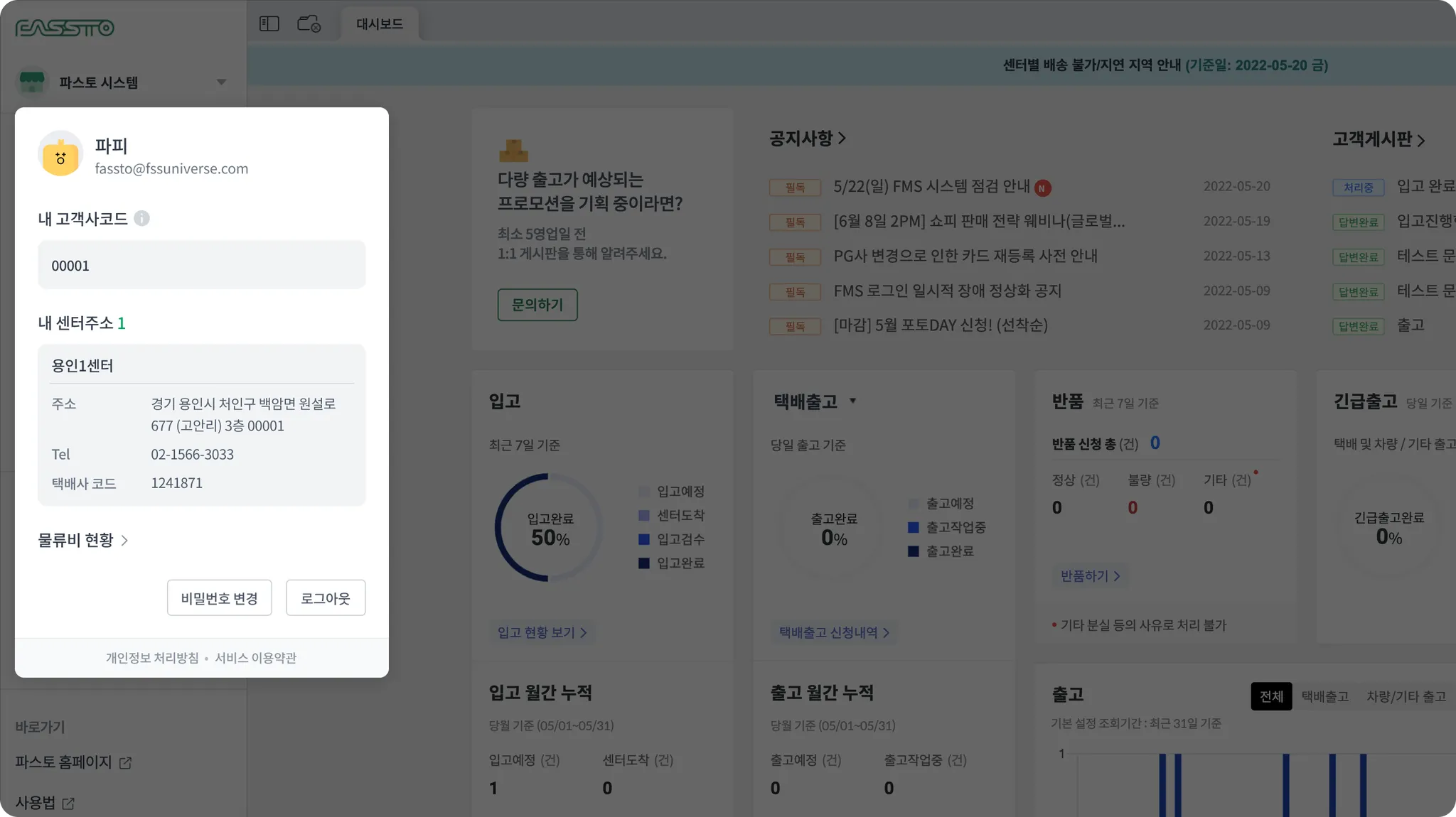 이제 프로필 팝업에서 고객사코드와 센터주소를 볼 수 있어요!