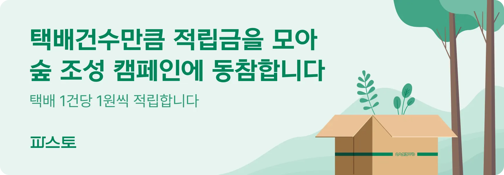 현재 파스토 풀필먼트를 이용하고 계시다면 아래의 이미지를 다운받아 마케팅에 활용해보세요! 지금도 고객님의 택배는 숲 조성에 일조하고 있어요