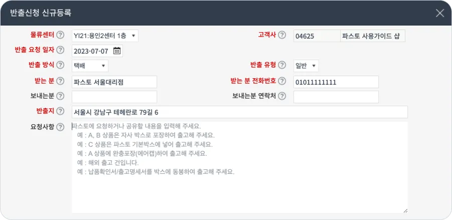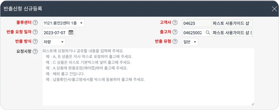 (EX: 고객사 재고회수, 상품교환, 센터이관으로 인한 출고 등등)