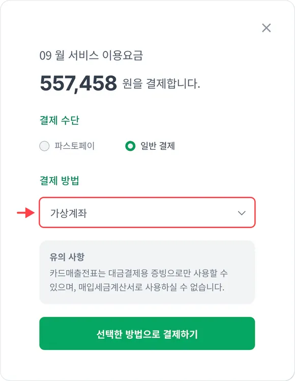 ※ 결제마감일까지 결제되지 않은 경우, 서비스 이용약관의 결제일정에 따라 연체료가 발생합니다.