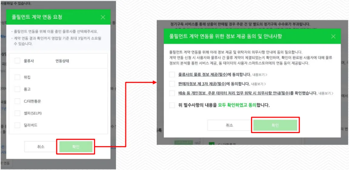 풀필먼트 연동 및 도착보장 약관 동의가 필요합니다.