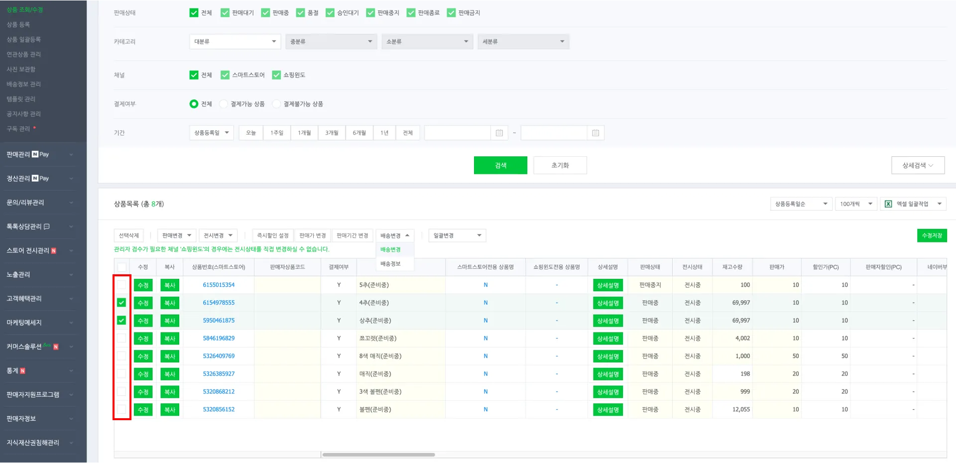 a. [상품조회] > [상품목록] > 상품 목록 체크