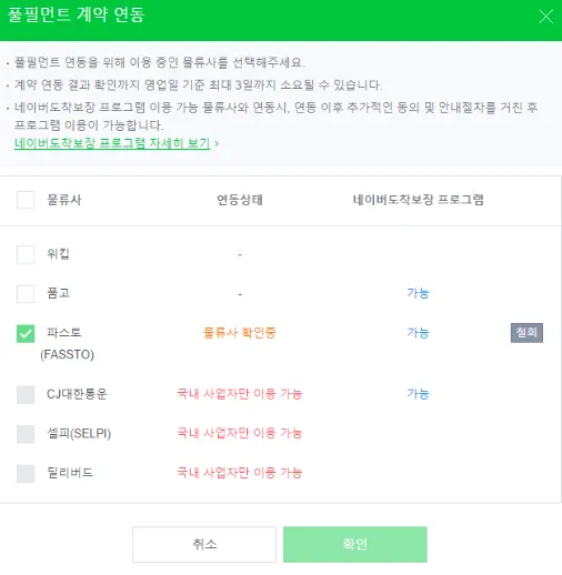 Step 1 : 네이버 스마트스토어에서 파스토 풀필먼트 연동 신청하기