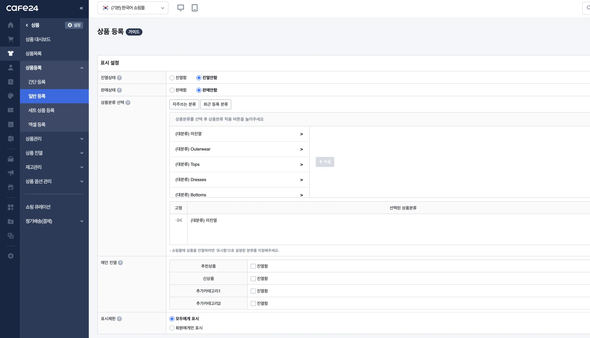 3. 카페24 설정 - 상품등록하기