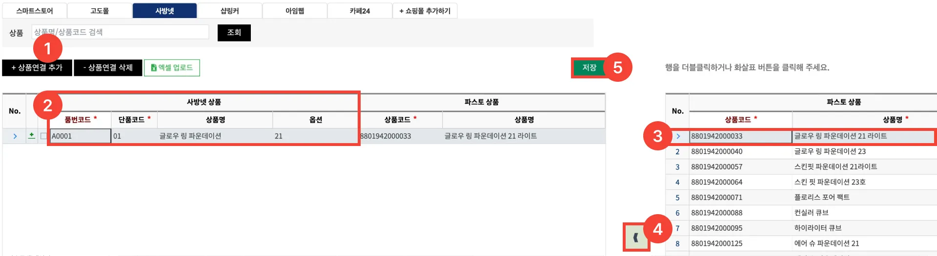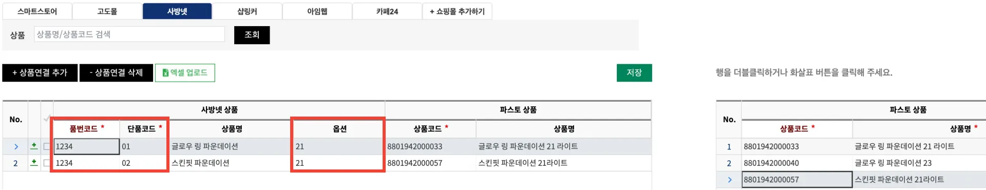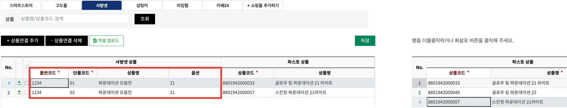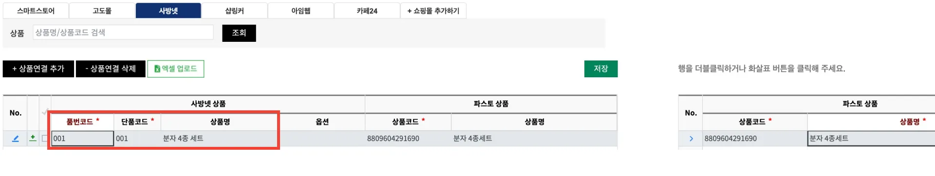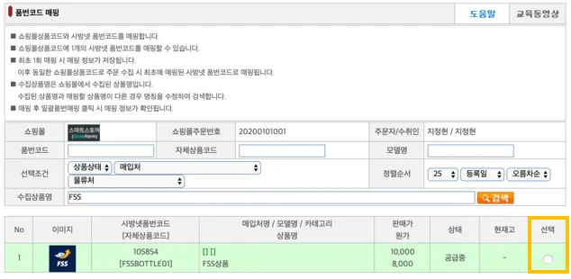 4. 사방넷 상품과 FMS 상품 연결하기