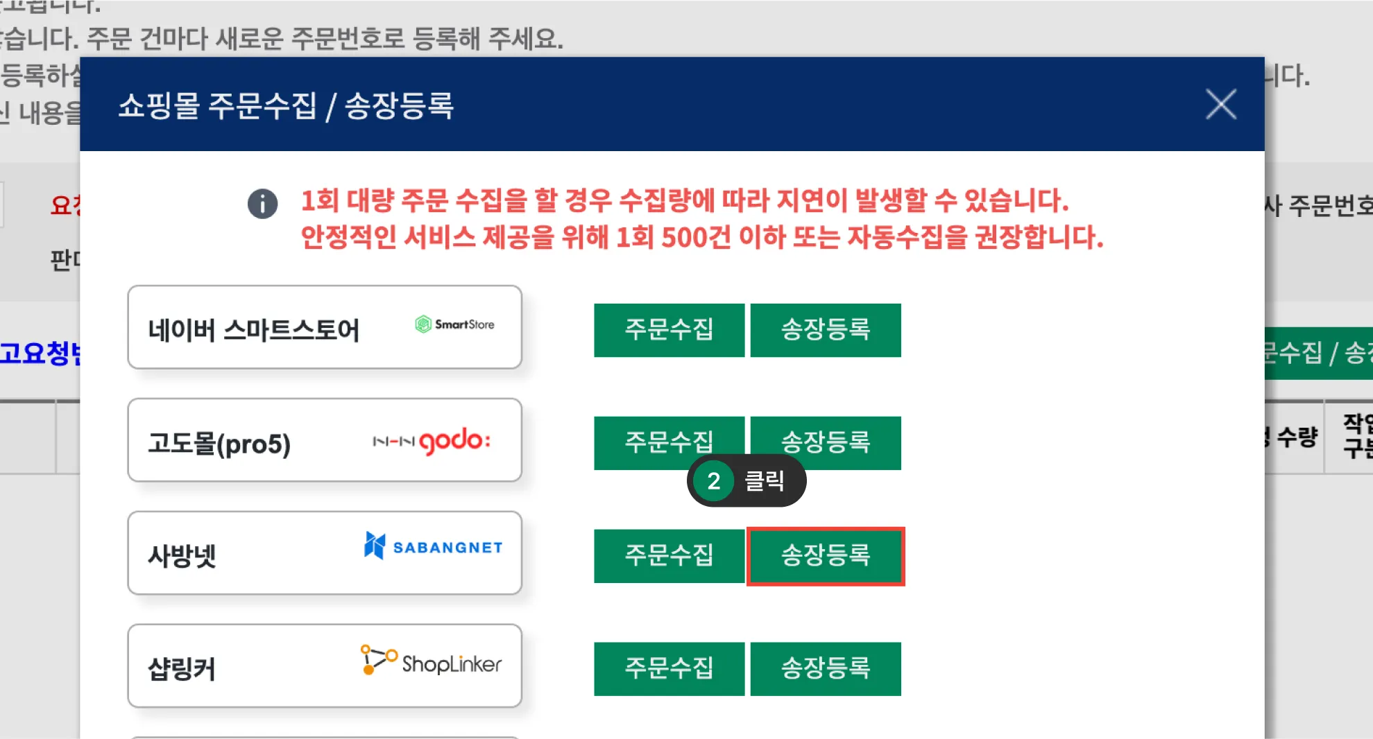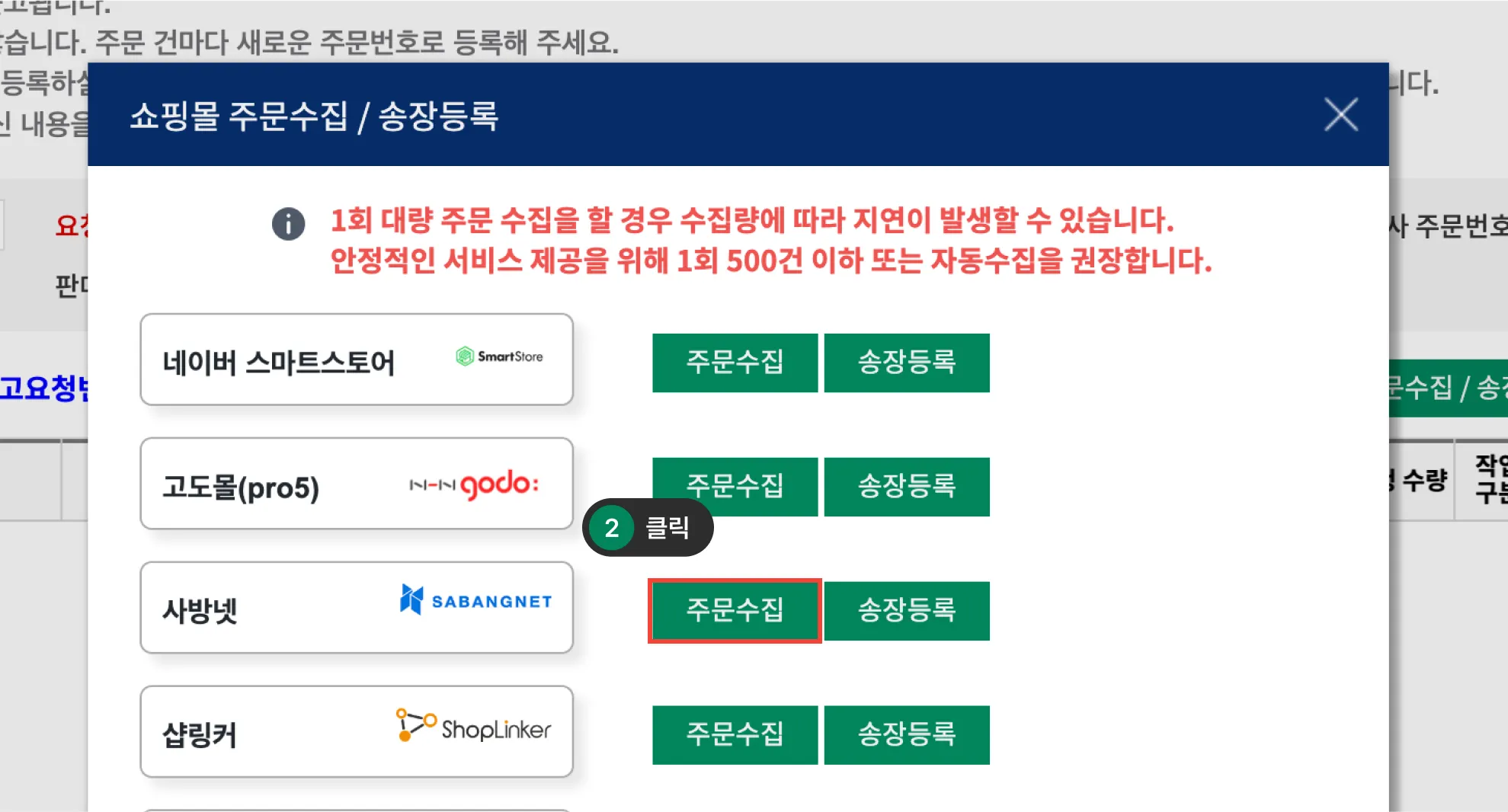 수동 주문 수집 방법