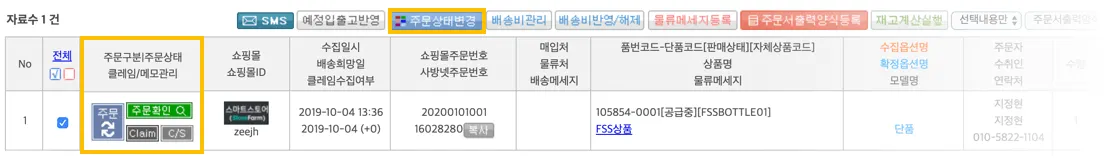 [주문 상태 변경]을 눌러 주문 상태를 [신규주문]에서 [주문 확인]으로 변경해 주세요.