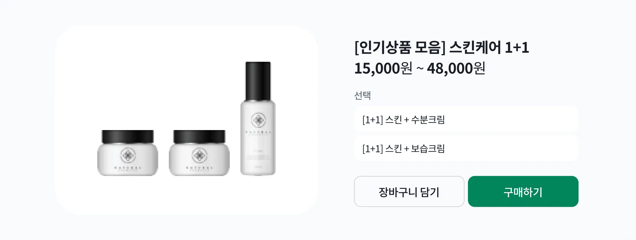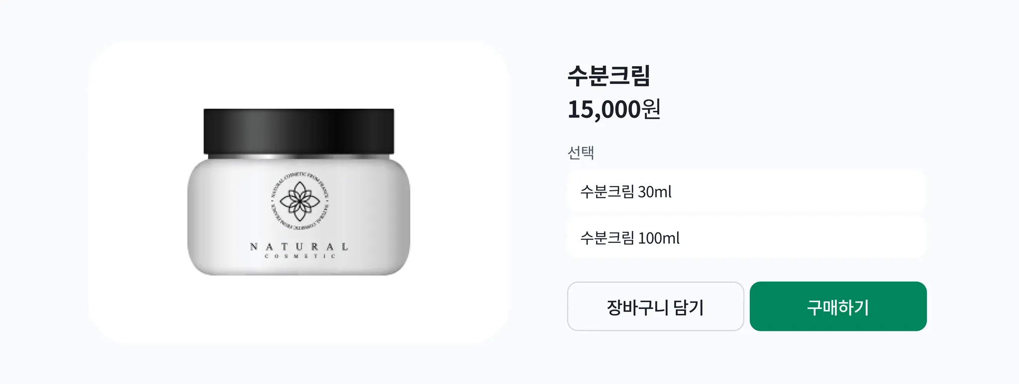 옵션(선택항목), 수분크림 30ml와 수분크림 100ml는 단일 상품 2개입니다.