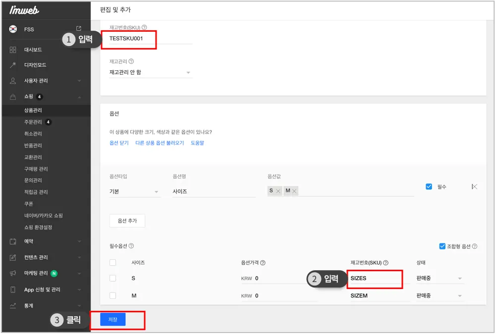 아임웹에 등록한 상품을 FMS에 등록한 상품과 연결하는 작업입니다.