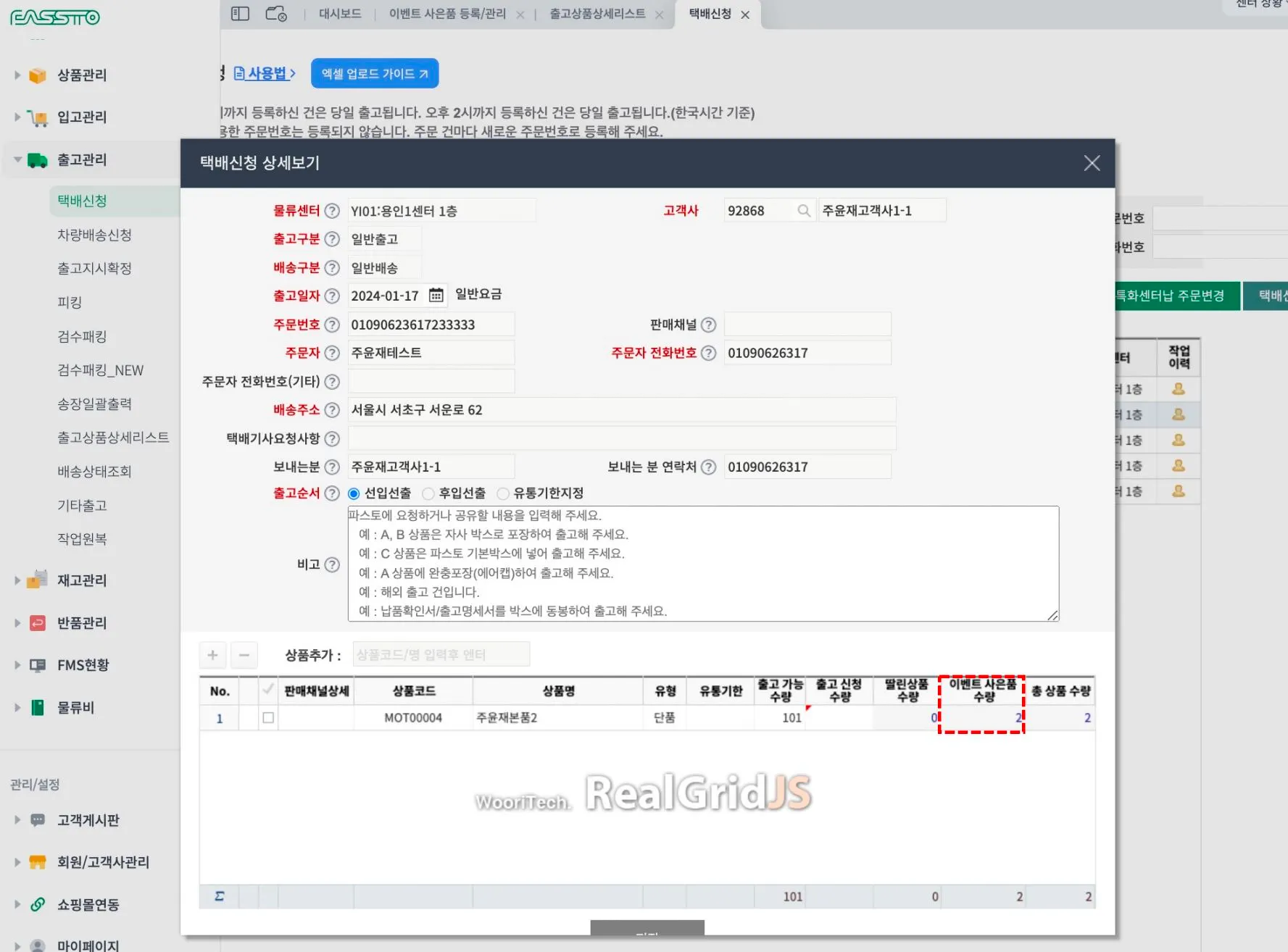• 이벤트 사은품은 자동 수집에 의한 주문에만 출고되기에, FMS를 통한 수기 출고신청은 불가합니다.
