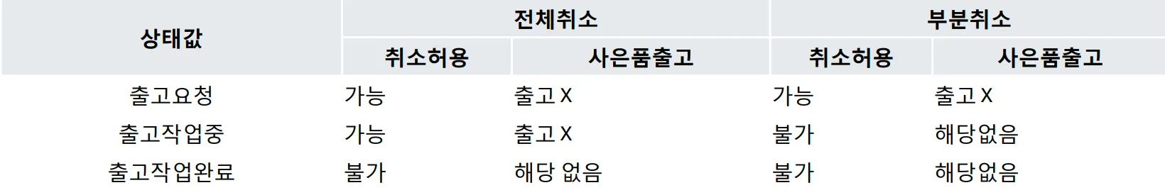CASE1 : 배송 속성 또는 부분출고 Y로 인한 분리배송 중 출고요청번호 1번 취소 시