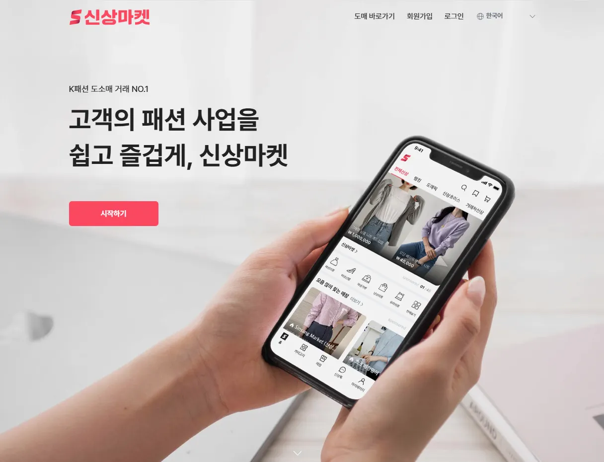 동대문 도매 매장의 신상품이 실시간으로 올라오는 국내 1위 패션 B2B 플랫폼입니다. 사업자 인증만 받으면 도매가로 낱장 구매도 가능하며, '신상배송' 기능을 통해 사입부터 사입삼촌 역할(배송)까지 한 번에 대행해 줍니다.